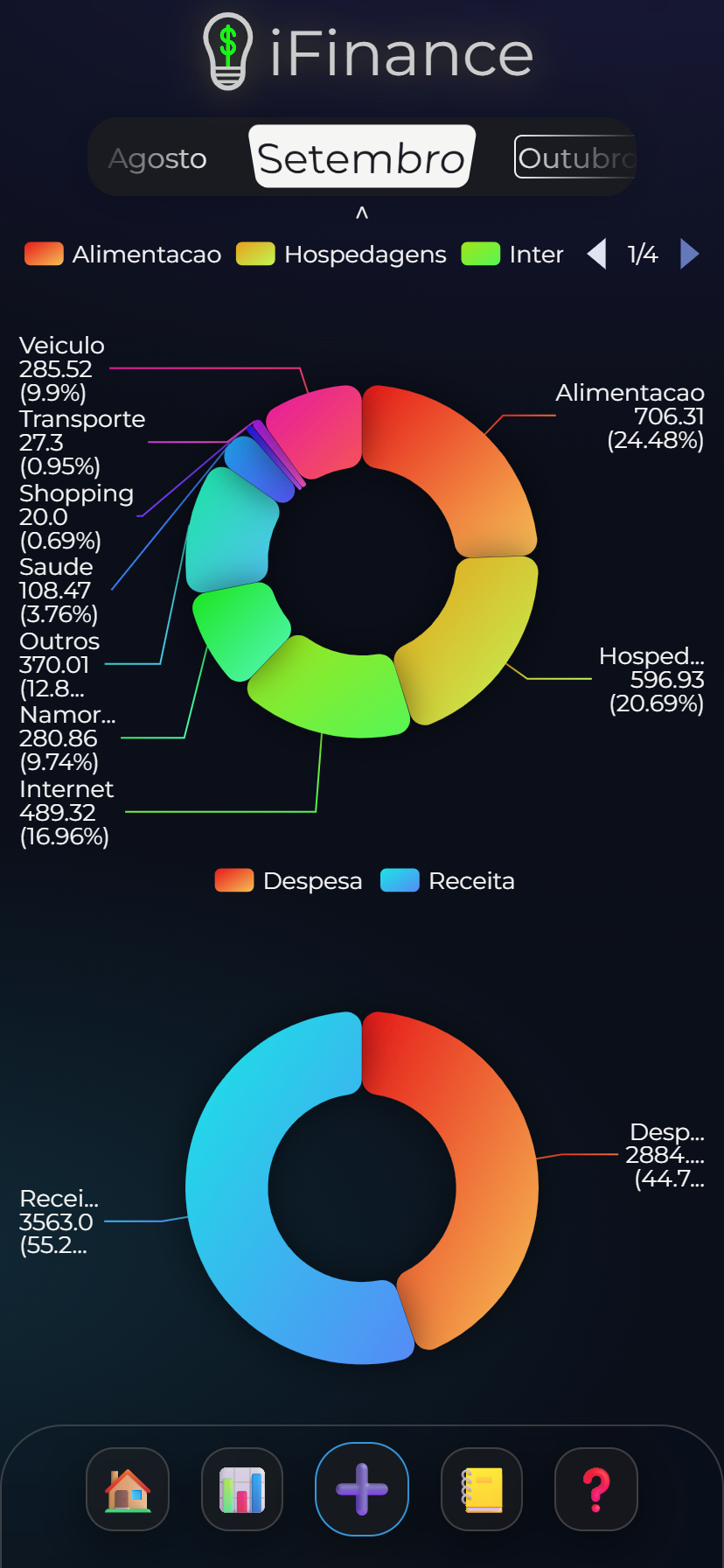 Com a iFinance você consegue gerenciar facilmente suas despesas e receitas com gráficos e tudo automático!